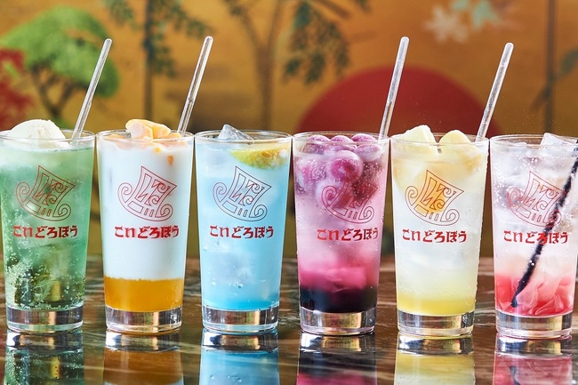 さらにお酒の品揃えも、若者に照準を合わせたラインナップを徹底。若い世代では日本酒や焼酎をほとんど飲んだことがないという人も多く、実際に同店でも注文率はそこまで高くない。そこで、淡い水色の「こいどろレモンサワー」をはじめ、カラフルなアイスを浮かべた「まるごとアイスの実サワー」など、見た目が華やかで、甘く飲みやすいお酒を充実させている。お茶やジュースのほか、紅茶豆乳や抹茶ラテ、「みっくちゅじゅーちゅ」などのソフトドリンクも種類豊富だ。