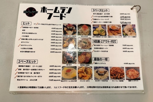 この他、「2時間飲み放題付き ホームラン満喫コース」(4,000円)や、客足が減りがちな月・火曜限定で「3時間食べ飲み放題コース」(5,000円)などコースプランも導入し、集客につなげている。
