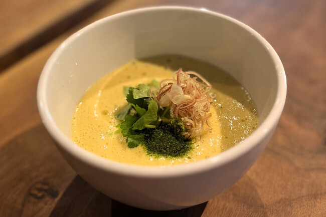 『並木橋なかむら』で学んだ料理をベースに、自らのアイデアをプラスして作る気の利いた和のおつまみと洋のナチュラルワイン、そしてメニューに欠かせない“〆蕎麦”。アパレル業界で得たサービスの経験や知識などの強み、さらには人脈などすべてが融合され、西村氏らしい店づくりで“るつぼ”が完成した。