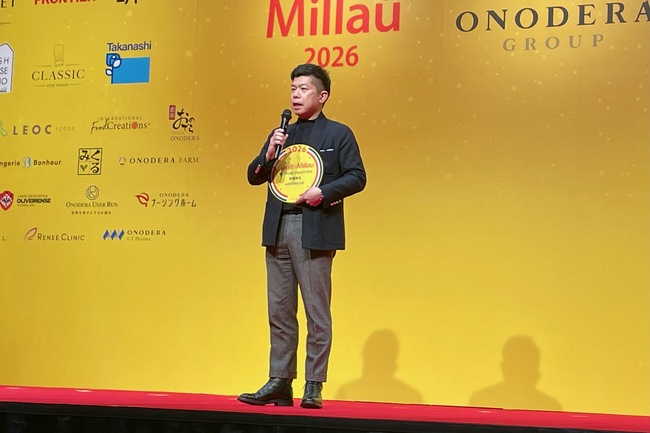 伝統文化を守りつつ、次世代へつなぐ挑戦を続ける職人や料理人に贈られる「トラディション賞」。今年は、主力商品「富士酢」で多くのシェフを支える傍ら、地域活性化にも尽力する京都『飯尾醸造』の5代目当主、飯尾彰浩氏が選ばれた。飯尾氏は、「黒子であるわれわれに光を当てていただき、感謝します。これをきっかけに皆さんに丹後へ来ていただきたいです」と述べ、自身の活動の拠点である丹後への熱い思いを滲ませている。