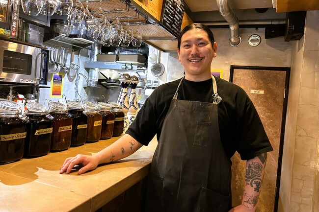 大井町駅から徒歩約5分、どこか懐かしさが残る三ツ又商店街に2023年12月オープンした立ち飲み店『CHA』。すべて店で手作りしている完全オリジナルの茶割り「クラフトCHA割り」と本格的なビストロ料理で、リピーターをはじめ多くのファンを獲得し、坪月商約70万円という大人気ぶりだ。同店を運営する株式会社SOKSオーナーの小野寺健太さんにその成功の裏側を聞いた。