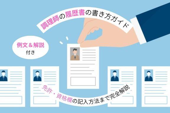 【例文付き】調理師の履歴書の正しい書き方と免許・資格欄の記入方法【しょくヨミ!!】 2026年04月28日 更新 (2026年04月28日 公開) 食の仕事人 , 飲食の仕事の心得 この記事の概要 飲食店や病院、施設などの調理師として働いている方で、履歴書の書き方に困っている方も多いのではないでしょうか。 履歴書はあなたのこれまでの努力やスキルを採用担当者に伝える重要な資料です。マ 記事を読む 「飲食の仕事の心得」の関連記事 ランキングを見る 飲食店向け職務経歴書の完全ガイド!職種別の自己PR文の書き方を例文付きで解説【しょくヨミ!!】 飲食店店長の年収はいくら?平均相場と年収アップするコツを解説【しょくヨミ!!】 決算書、来店不要で最短当日借入が可能。入出金データを連携すれば借入可能目安額が常に見える。 PR 飲食店専門の求人サイトだから即戦力が見つかる。社員とアルバイトまとめて19800円で掲載可! PR 憧れのイタリアンレストランで働く! 仕事内容から必要なスキル、成功へのキャリアプランを徹底解説【しょくヨミ!!】 飲食店の本部職とは? マーケティング・PR・DX推進の仕事内容と未経験からのキャリアパスを解説【しょくヨミ!!】 「食の仕事人」の記事一覧 ≫
